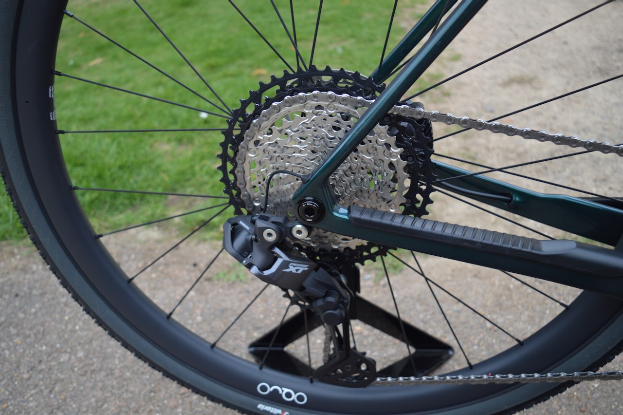 Orbea Denna, Thru Axle 12mm x 142mm rear, thread M12xP1, internal cable routing.